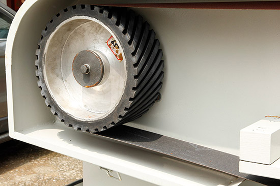 應用范圍:此款輸送帶水磨拉絲機適用于各種材質的五金小板料拉絲,掃紋處理,還可用于焊接好的方條打磨,拉絲處理。如:小音箱、VCD面板等。對方管(棒)紋路板金條的加工效果更佳。
